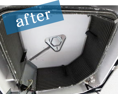 通常のエアコンクリーニングではクリーニングを行わない場所まで完全に分解しクリーニングを行います。このように完全分解しないとカビを完全除去することができません。その結果「エアコンクリーニング」を行ってもアレルギー性気管支炎の症状である、目のかゆみ、喉の痛みなどに悩まされる方が多くいます。
