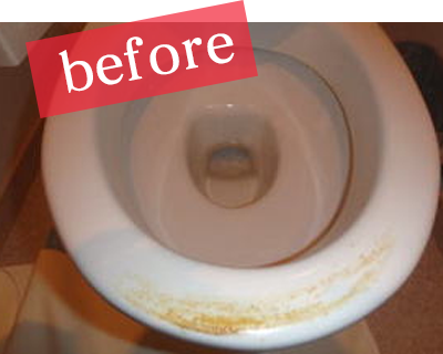 トイレのドアを開けると鼻にツンと突き刺さる悪臭を経験した事はありませんか?この悪臭の原因は長年の間蓄積された尿石から出ているものです。このような悪臭が出てくるとなかなか市販の洗剤では落とせません。トイレの便器には、輪ジミ・黄ばみ・黒ずみ・水アカ・尿石と様々な汚れが付着しています。時間の経過と共に汚れが定着し、いざ掃除をしようとしても市販のせんざいでは落ちません 落ちないからと、粗めのスコッチ等を使って強くこすり便器にキズを付けてしまいます。